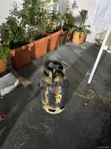Durch den eingesetzten Atemschutztrupp wurde im Brandobjekt eine Gasflasche entdeckt, die umgehend intensiv gekühlt wurde. Der teilweise eingestürzte Dachstuhl mit herabgestürzten Dachziegel und Verputz erschwerte die Bergung der Gasflasche.