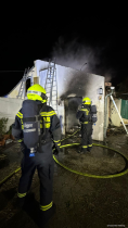 Gemäß Alarmstufe Brand 2 wurden zusätzlich die Feuerwehren Velm und Pellendorf alarmiert. Nach einer Lageerkundung des Einsatzleiters nahm ein Atemschutztrupp sofort die Brandbekämpfung auf, während im angebauten Nachbargebäudeteil laufend mittels Wärmebildkamera kontrolliert wurde. Ein Übergreifen auf das angebaute Nebengebäude konnte erfolgreich verhindert werden.