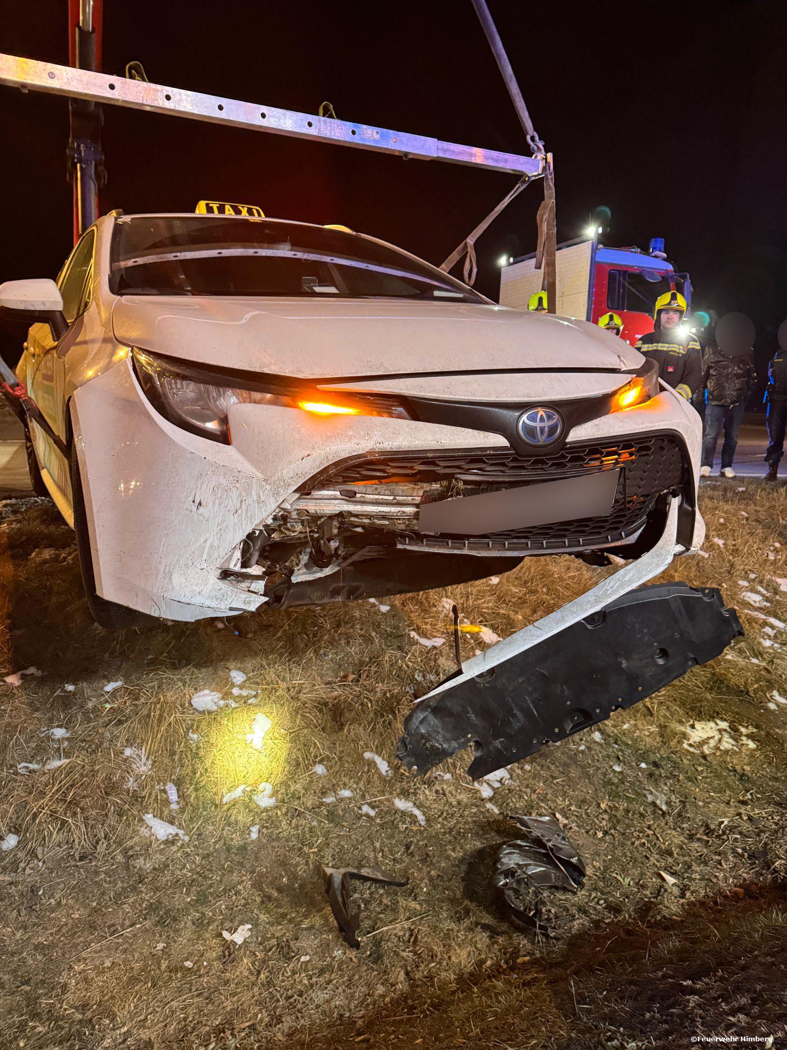 Die Feuerwehr Himberg wurde am Abend des 21. Jänner 2026 zu einer Fahrzeugbergung nach einem Verkehrsunfall auf der Ortsumfahrung alarmiert. Ein Taxi war aus bislang ungeklärter Ursache von der Fahrbahn abgekommen und in einem Straßengraben zum Stillstand gekommen.
