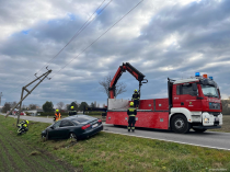 Vergangene Woche wurden die Einsatzkräfte der Feuerwehr Himberg in den frühen Morgenstunden zur Unterstützung der Feuerwehr Velm auf die Landesstraße L2005 zwischen Velm und Münchendorf alarmiert. Ein Pkw war aus bislang unbekannter Ursache von der Fahrbahn abgekommen, frontal gegen einen Strommast geprallt und schließlich im angrenzenden Feld zum Stillstand gekommen.