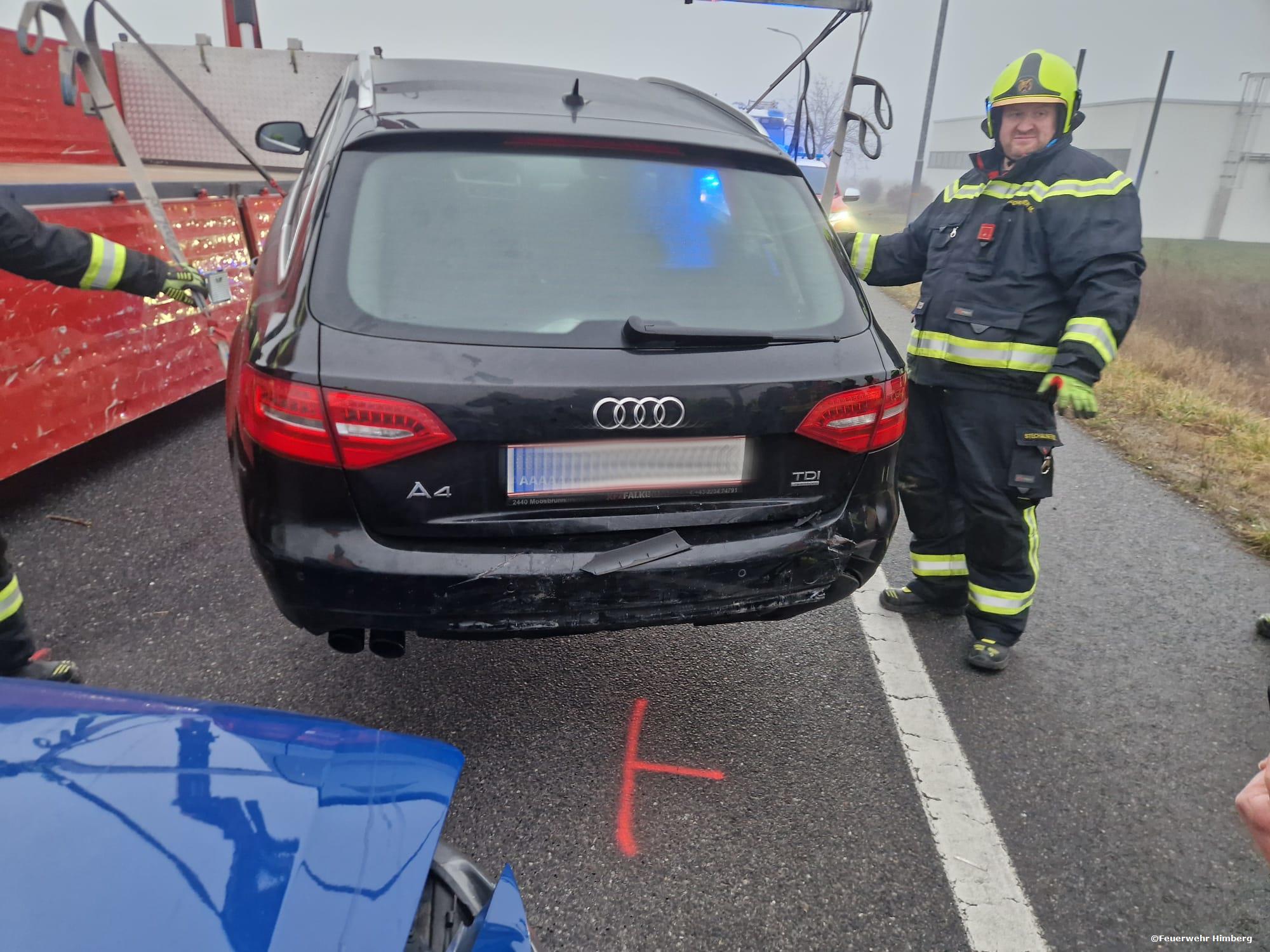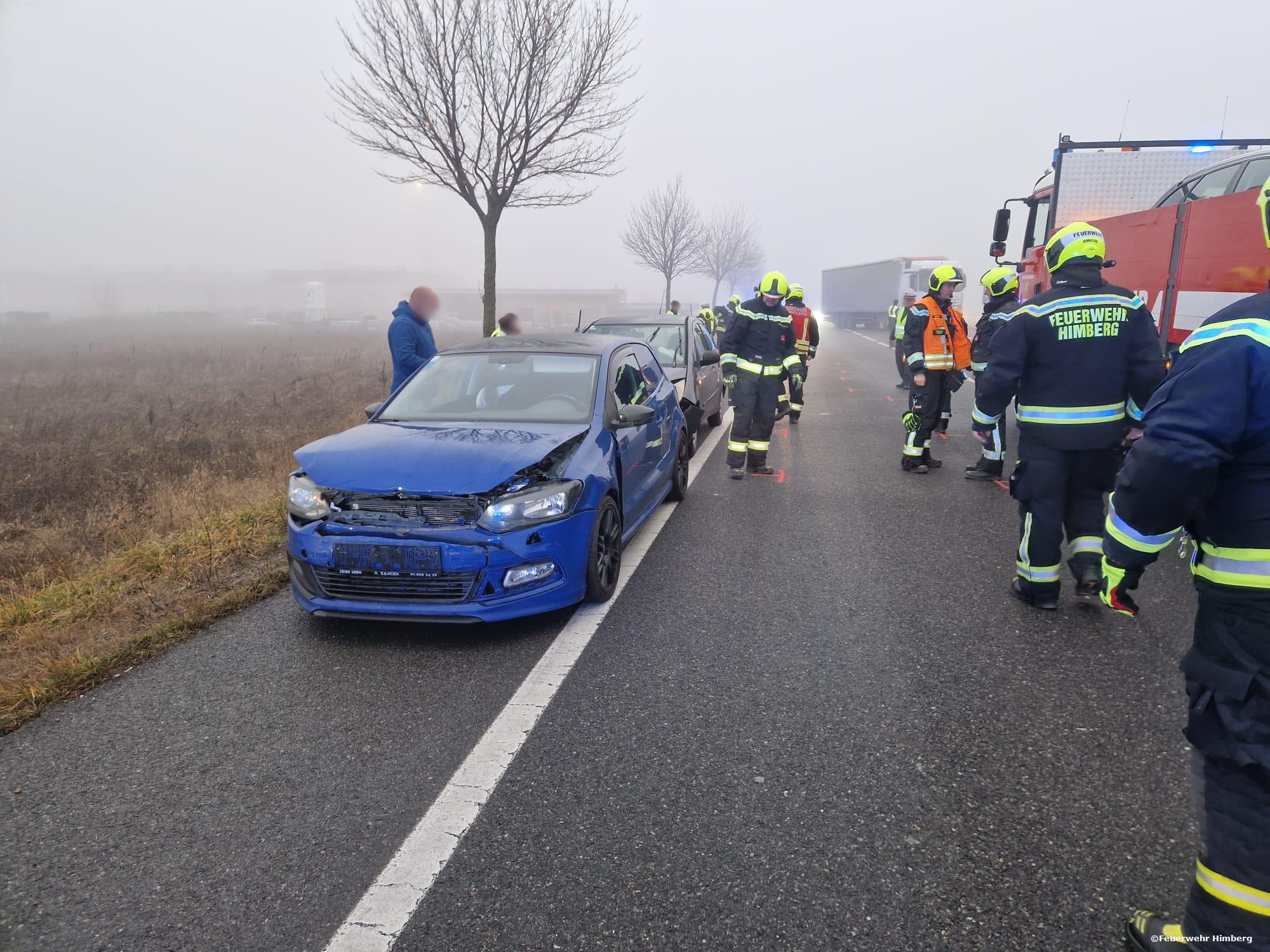 Vergangene Woche kam es auf der B15 Ortsumfahrung, kurz vor dem Kreisverkehr Himberg Süd, zu einem Verkehrsunfall mit insgesamt vier beteiligten PKWs. Dichter Nebel dürfte die Sichtverhältnisse erheblich eingeschränkt haben, wodurch es zu einem Auffahrunfall kam. Beim Eintreffen der Einsatzkräfte der Feuerwehr Himberg wurden bereits mehrere Personen mit leichten Verletzungen vom Roten Kreuz versorgt. Parallel dazu sicherten die Kräfte der Polizei bereits die Unfallstelle.