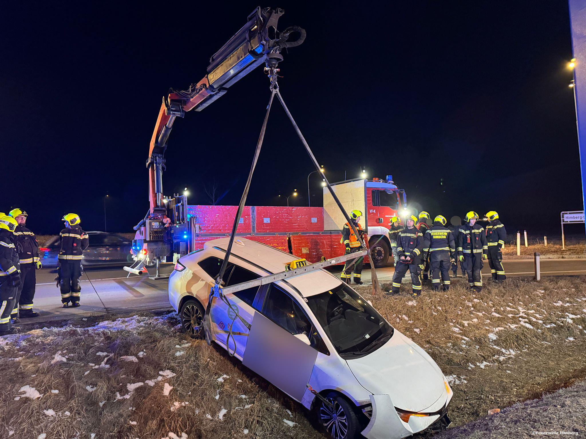 Die Feuerwehr Himberg wurde am Abend des 21. Jänner 2026 zu einer Fahrzeugbergung nach einem Verkehrsunfall auf der Ortsumfahrung alarmiert. Ein Taxi war aus bislang ungeklärter Ursache von der Fahrbahn abgekommen und in einem Straßengraben zum Stillstand gekommen.