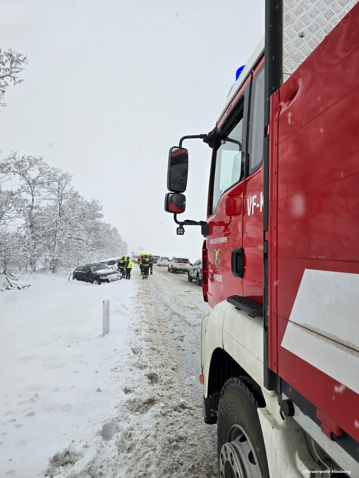 Am Donnerstag setzte am Abend in Himberg ein massiver Schneefall ein, der den gesamten Bezirk vor herausfordernde Straßenverhältnisse stellte. Die Feuerwehren im ganzen Bundesland waren davon betroffen, landesweit rückten mehr als 13.000 Feuerwehrmitglieder zu hunderten Einsätzen aus, um Straßen zu räumen, Fahrzeuge zu bergen und Bäume zu entfernen, die durch die Schneelast umgestürzt waren. Auch die Feuerwehr Himberg war stark gefordert und stand im Dauereinsatz.