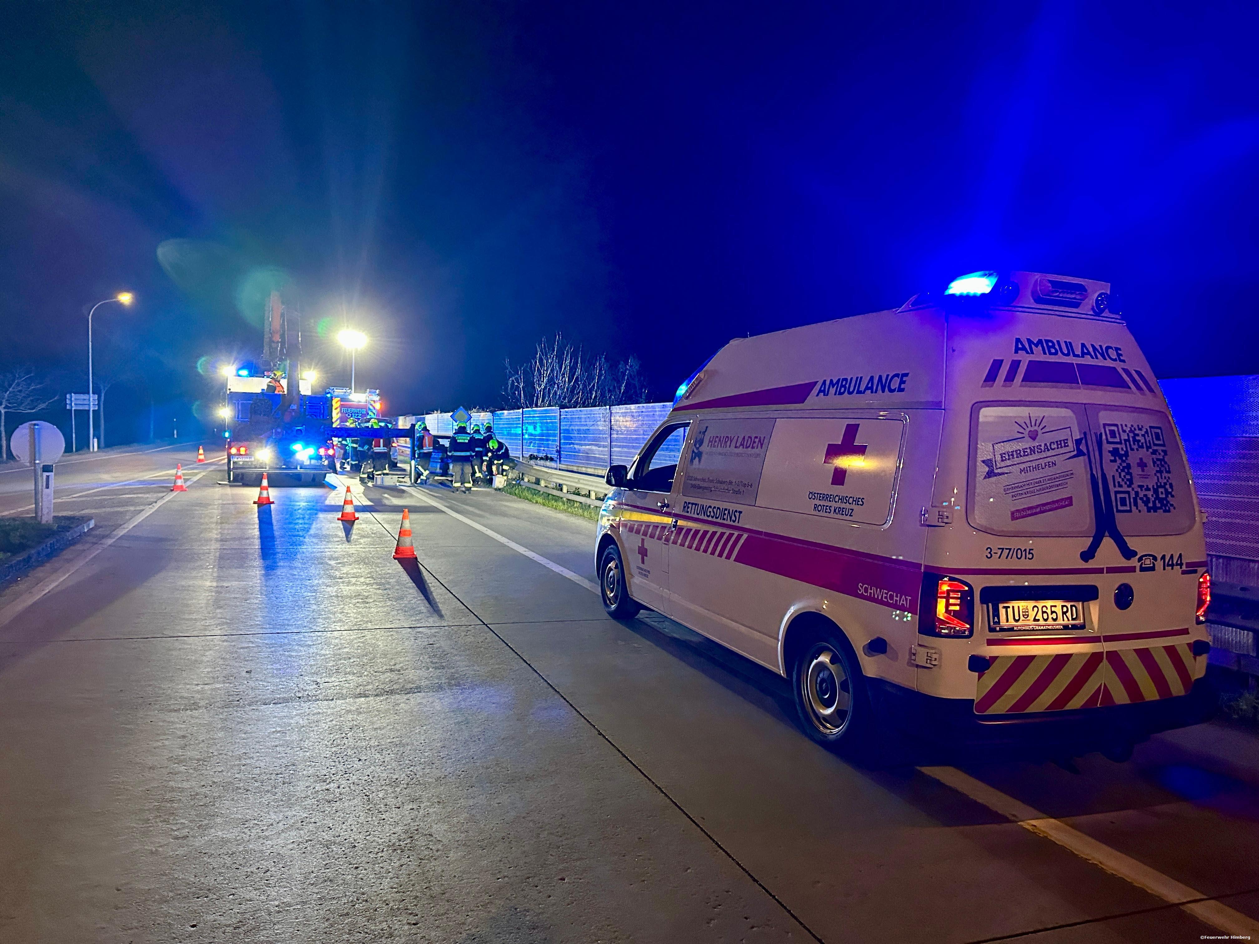 Beim Eintreffen der Einsatzkräfte wurde die verletzte Person bereits durch den anwesenden Rettungsdienstes des Roten Kreuz Schwechat versorgt. Am verunfallten Fahrzeug traten aufgrund des Aufpralles mit der Leitschiene Betriebsmittel aus, welche rasch gebunden wurden, um eine Gefährdung für die Umwelt sowie den nachfolgenden Verkehr hintanzuhalten.