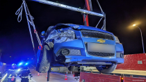 Im Anschluss erfolgte die Bergung des Fahrzeugs mittels Kran des Versorgungsfahrzeugs. Nach der notwendigen Beseitigung der herumliegenden Fahrzeugtrümmerteile konnte die Fahrbahn wieder sicher für den Verkehr freigegeben werden.