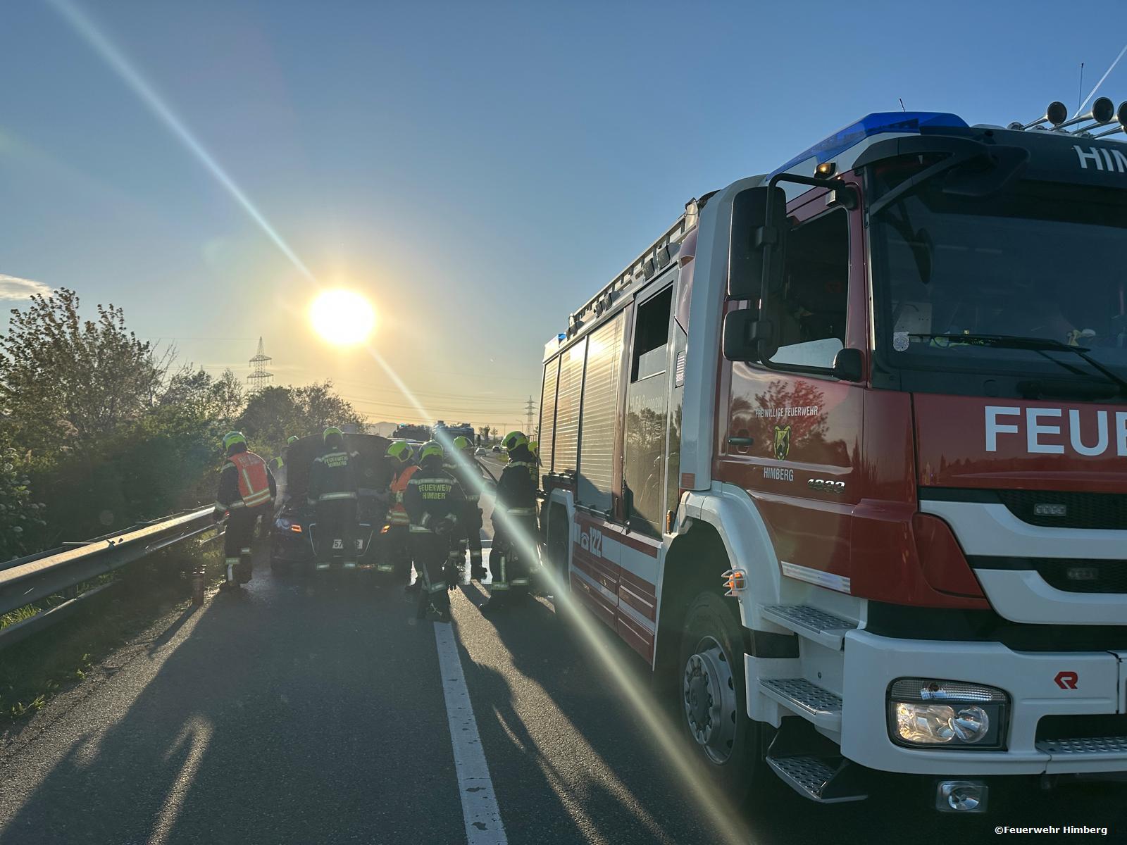 Gestern, am 23. April 2026, wurden die Einsatzkräfte der Feuerwehr Himberg zu einem Fahrzeugbrand auf die B15 Ortsumfahrung in Fahrtrichtung Achau alarmiert. Aus bislang unbekannter Ursache kam es im Motorraum eines PKW zu einem Brand.