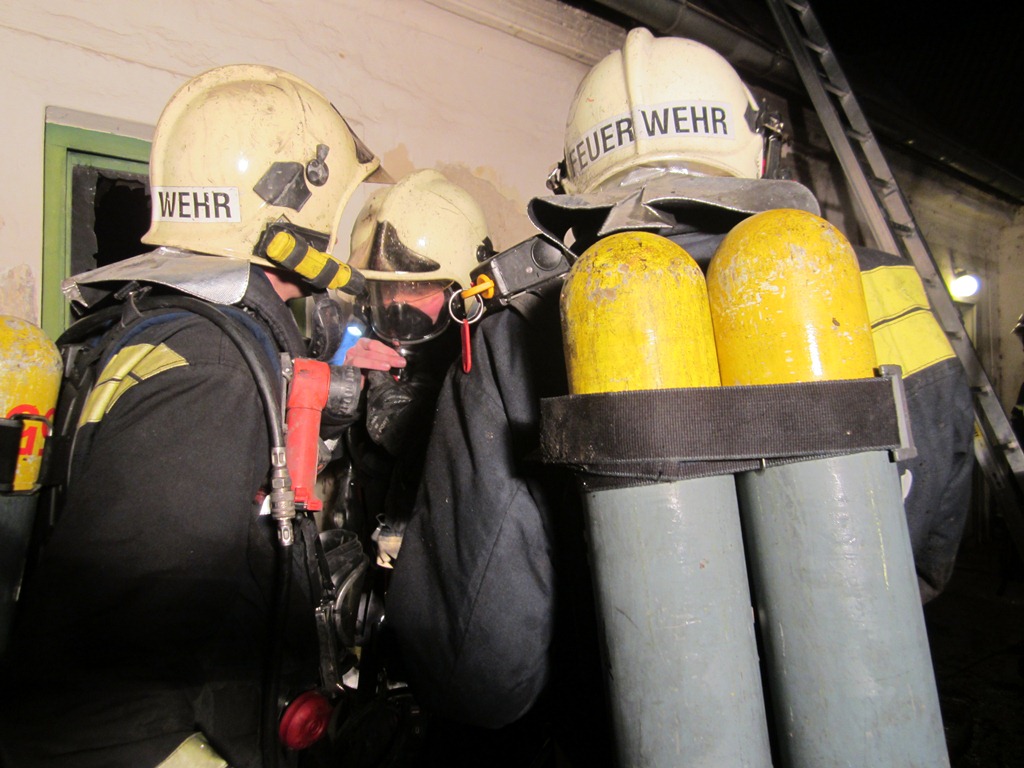 Beim Eintreffen der Feuerwehr Himberg im standen bereits die Feuerwehren Ebergassing und Wienerherberg im Einsatz. Diese Feuerwehren hatten bereits 2 Atemschutztrupps und 2 C-Rohre im Erdgeschoß des Wohngebäude im Einsatz. Auf Grund der extremen Verrauchung und der desolaten Bausubstanz und zahlreichen Deckendurchbrüchen wäre ein Einsatz eines Atemschutztrupps im Dachboden ohne Wärmebildkamera nicht möglich. Zwei Atemschutztrupps der Feuerwehr Himberg übernahmen die Brandbekämpfung im Dachgeschoß mittels Wärmebildkamera. Nach Eindämmung des Brandes und Öffnung der Dachlukenfenster konnte mit drei Druckbelüfter das Objekt schnell Rauchfrei gesetzt werden. Zur Endkontrolle wurde im Bereich des Brandherdes die Konterlattung der Dachstuhlkonstruktion sowie die Eternitdeckung geöffnet.
