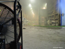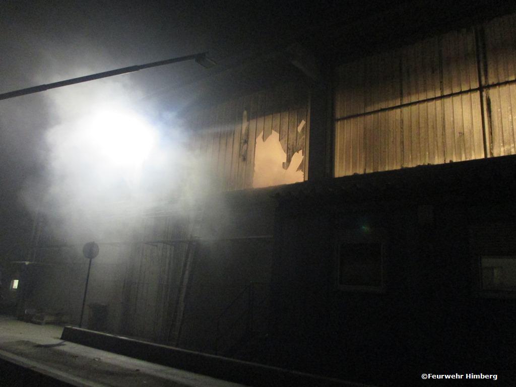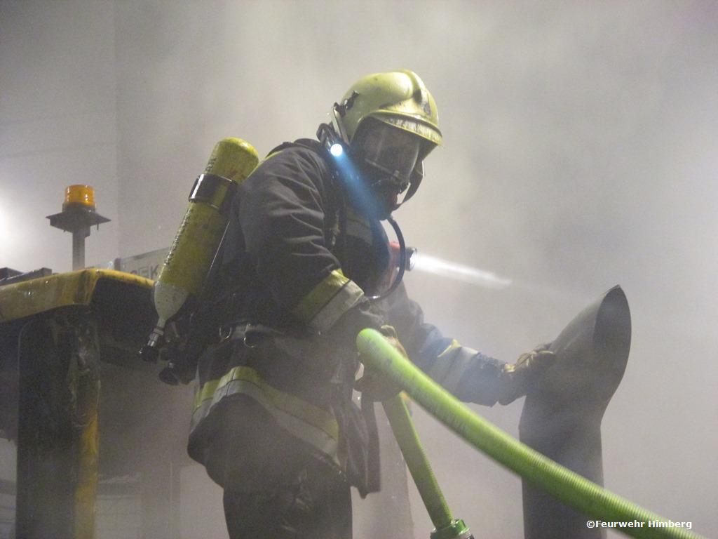 Den ersten Erkundungstrupp und Löschangriff setzte das Tanklöschfahrzeug Himberg mit umluftunabhängigem Atemschutz, einem C Rohr und der Wärmebildkamera. Der Löschangriff zeige schnell Erfolg so konnte mit der Entrauchung der Halle mit 4 Überdruckbelüftern begonnen werden. Zum Ablöschen wurde ein zweites C Rohr mit umluftunabhängigem Atemschutz vom KLF Himberg in Betrieb genommen. Die Feuerwehren Pellendorf und Maria Lanzendorf blieben bis Brand aus in Bereitschaft. Die Kontrolle nach Glutnestern und Hotspots in der Halle sowie am Radlader erfolgte mittels Wärmebildkamera.