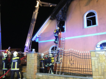 Beim Eintreffen des ersten Fahrzeuges stand das Obergeschoss des Wohnhauses derart in Vollbrand, dass der Feuerschein schon beim Ausfahren deutlich sichtbar war. Durch die hohe Brandintensität kam es zudem zu einer massiven Verrauchung des zweistöckigen Wohnhauses.