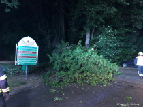 Beide Bäume mussten aufgrund ihrer Schäden gänzlich umgeschnitten werden. Der Gehweg wurde von den herabgefallenen Stämmen und Ästen befreit und im Anschluss wieder für den Verkehr freigegeben. Nach Abschluss der Aufräumarbeiten konnten alle 16 ausgerückten Kräfte und vier Fahrzeuge, nach gut einer Stunde, wieder ins Feuerwehrhaus einrücken.